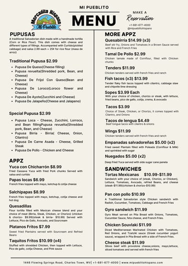 Delicious Hispanic food on every plate.